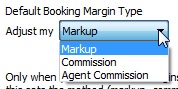 - Under Default Booking Margin Type you can choose to adjust either Markup or Commission by choosing your required option from the drop-down options next to Adjust my (shown below).
