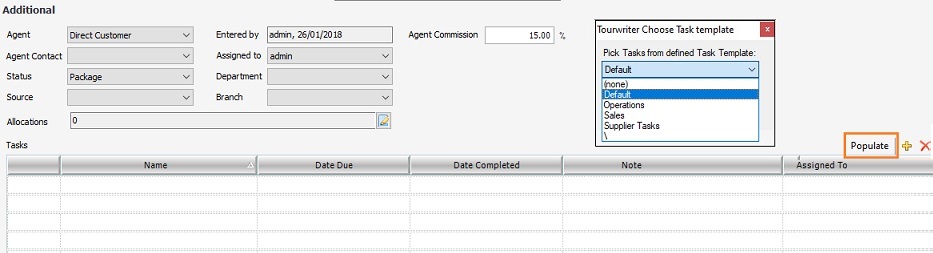 2. Select Populate under the Tasks grid. This opens the Choose Task Template window