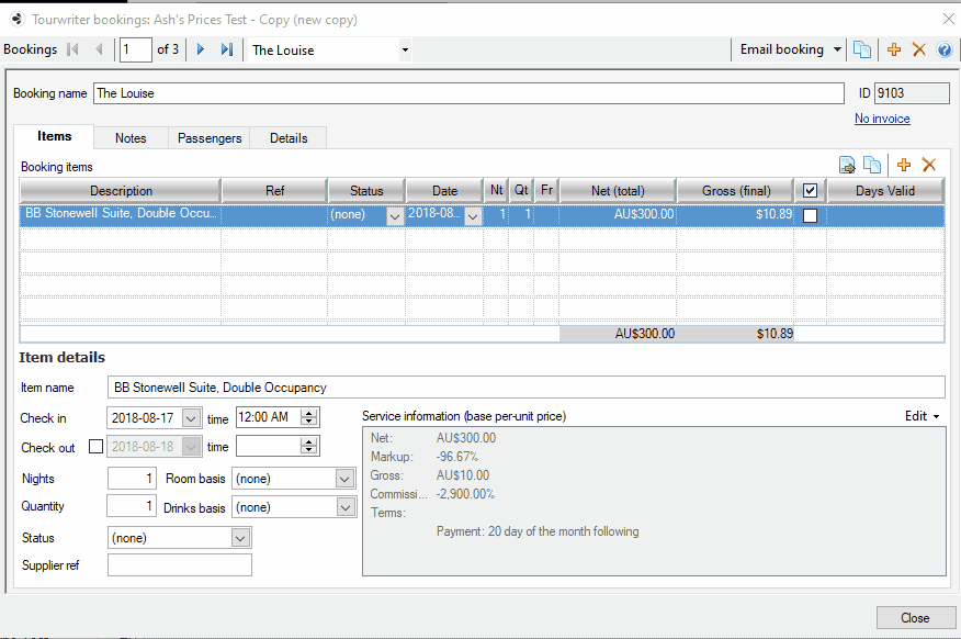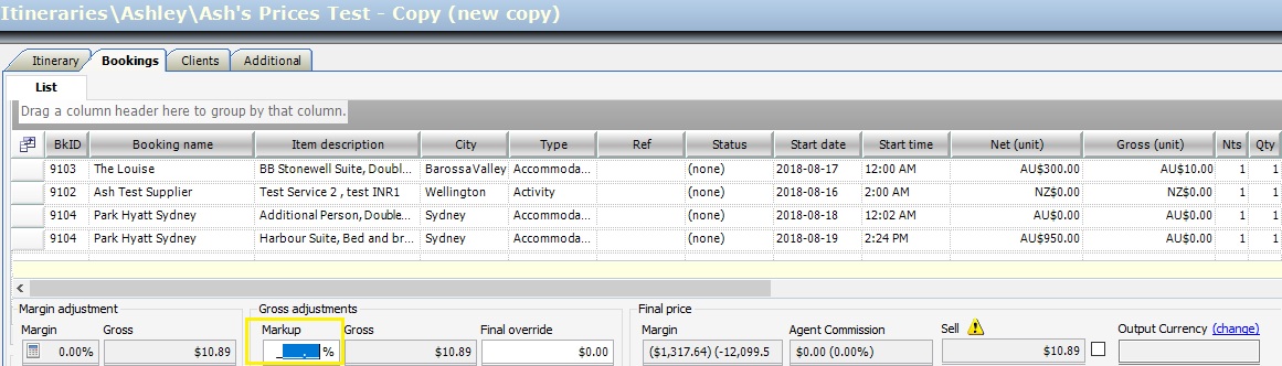 Resolution: Before changing the gross price of all items in the itinerary to 0, ensure you remove the gross markup percent by clearing it.