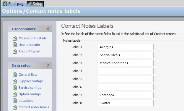 /Getting Started / Setup / Data Setup / Contact Notes Labels