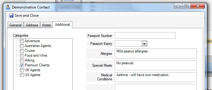 Contact Notes Labels comprise 8 customisable fields which will then populate the respective fields on the Additional Tab for a Contact.