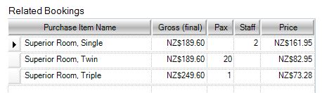 Override the number of Pax or Staff per booking by overtyping the Pax and Staff Quantities in the Related Bookings table: