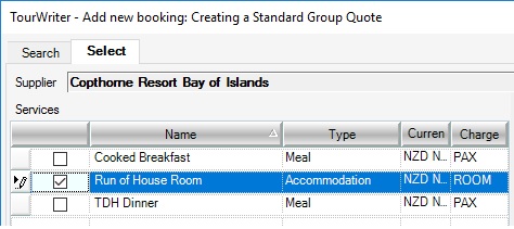 A new tick box to the left of the Services > Name field. By ticking this box, you will add both the Service AND the applicable Pricing Options, based on the Room Types added to the Groups setup form.