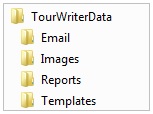 The TourwriterData Folder is a collection of folders where Travelmesh images, report templates and emails are stored. This is held in a separate location to the Travelmesh Database.