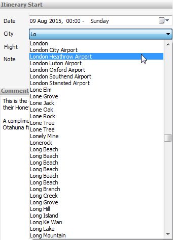 This is the City where a client’s arrangements with you start and end. For inbounders this is likely to be within the country they are visiting. For outbounders this is likely to be locations within their country of origin. The Travelmesh database comes preloaded with numerous cities and it is important to note that the Cities field has been loaded to included names of airports as well as city/town names.