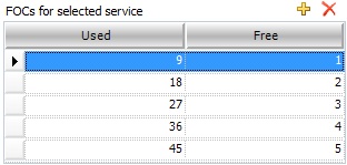 button and load the number of services Used (required) and the number of Free services given. The example above shows that for every 10 services used, 1 service is FOC.