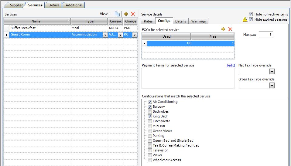 IMPORTANT – This is an active field; the data loaded here will alter the cost of the Service in an Itinerary accordingly.