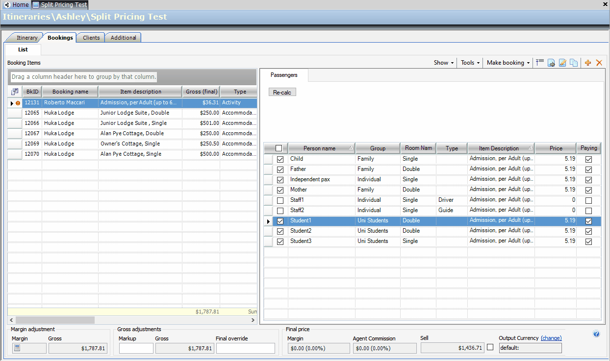 Split pricing is useful for small groups tours where different family groups can have different invoices or large group tours where individual passengers opt for Pre, Post travel or additional activities. Split pricing is also well-suited if you wish to alter between per passenger or group pricing.