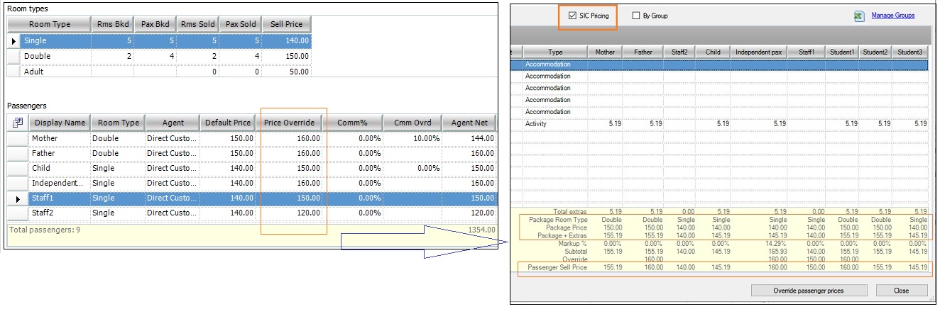 - To view total SIC pricing per passenger, head to Split pricing window.