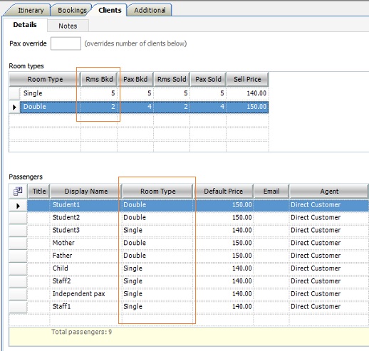 - Assign a room to each passenger in the Room Type dropdown. Confirm whether the rooms assigned match up to the value in the Rms Bkd column in Room types.