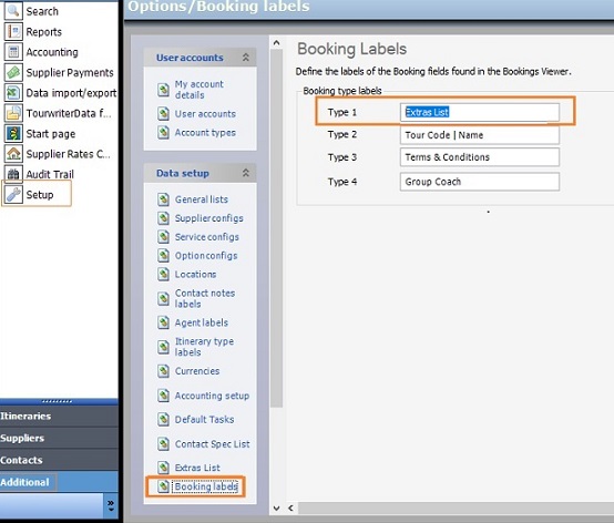 - Navigate to Tools > Setup > Booking Labels.