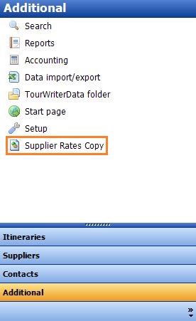 - Click Additional on the Menu (far left) > Supplier Rates Copy to open the Copy Rates Tab.