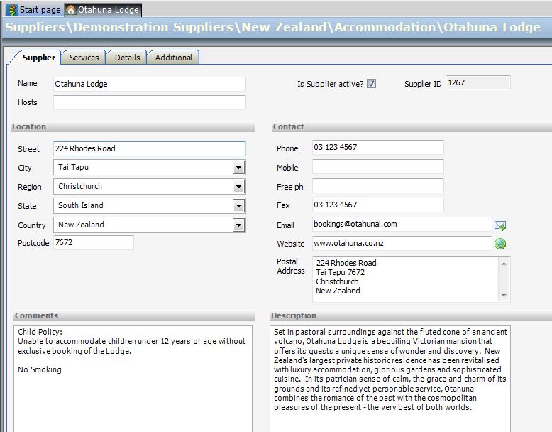 The Supplier Tab is used to store the Name, Location and Contact details of the Supplier. It also offers both a free-format Comments field and Description field.