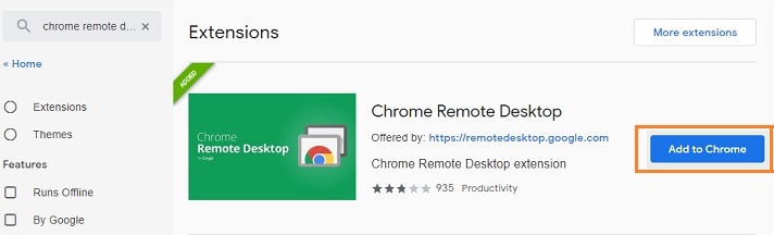 2. In the search bar, type Chrome Remote Desktop and select Add to Chrome to add the app as an extension.